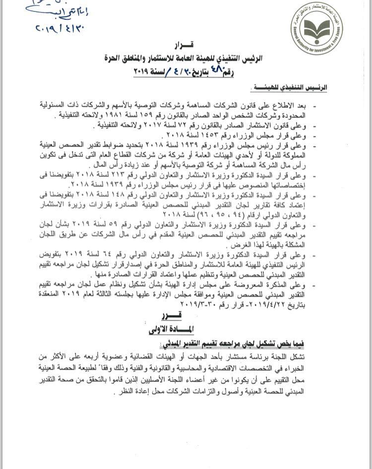 في إطار جهود وزارة الاستثمار والتعاون الدولي للتيسير على المستثمرين، وفي إطار سعي الهيئة العامة للاستثمار والمناطق الحرة العمل على تبسيط الإجراءات على المستثمرين وتقديم خدمات متميزة؛ أصدرت الهيئة الكتاب الدوري رقم 32 لسنة 2019 الخاص بتغيير الشكل القانوني إلى شركات الشخص الواحد، حيث قررت الهيئة الاكتفاء بتقديم إقرار من أصحاب الشأن أو من أحد الجهات المتخصصة إلى مركز خدمات المستثمرين بالهيئة مباشرة للتأكد من صحة وسلامة القيمة الظاهرة في تاريخ التحول إلى شركة الشخص الواحد دون الحاجة إلى إجراءات أعمال التقييم.