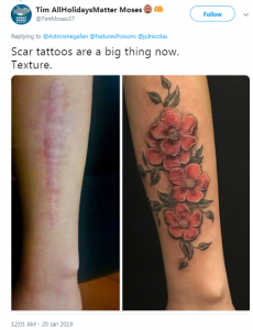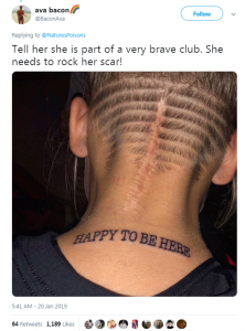 وسرعان ما انتشرت التغريدة على منصات السوشيال ميديا، التى أبدى كثيرون دعمهم الكامل للفتاة بمواقف مماثلة لتلك الإصابة، بالإضافة إلى مشاركة صور لبعض الجروح التى أصيبوا بها بعد إضافة رسومات إليها لتجعلها جميلة.