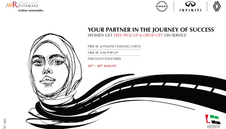 بمناسبة يوم المرأة الإماراتية، تتوجه العربية للسيارات، شركة السيارات الرئيسية في مجموعة عبدالواحد الرستماني، والوكيل الحصري لنيسان وإنفينيتي ورينو في دبي والشارقة والإمارات الشمالية، بالدعوة إلى النساء اللواتي يقودن سيارات من العلامات التجارية الثلاث للحصول على مجموعة من المزايا الفريدة.