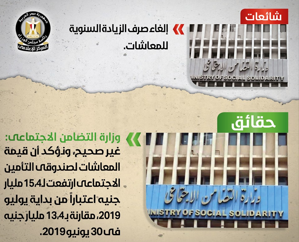 انفوجرافيك.. “الوزراء” ينفي 11 شائعة.. أبرزهم إلغاء صرف الزيادة السنوية للمعاشات