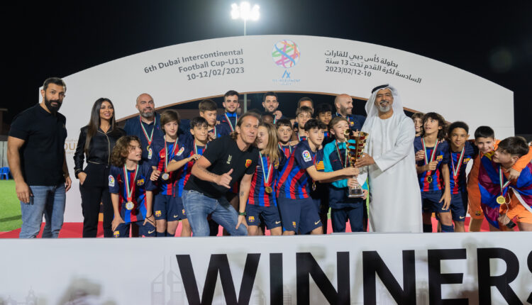توج مجلس دبي الرياضي فريق برشلونة الإسباني بلقب النسخة السادسة من بطولة “كأس دبي للقارات لكرة القدم تحت 13 سنة” الأكبر من نوعها من حيث تنوع وأسماء الفرق المشاركة فيها، والتي نظمتها أكاديمية فرسان هيسبانيا تحت إشراف مجلس دبي الرياضي وأقيمت منافساتها في مدرسة جيمس وينشستر دبي بمشاركة أكثر من 400 لاعب من 20 فريقًا من بينهم 4 أندية تمثل الدولة في المنافسة هي فرق: النصر، الوصل، شباب الأهلي، والوحدة.