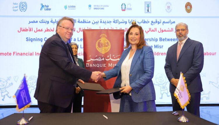 في اطار خطة بنك مصر لدعم جهود الدولة لتعزيز الشمول المالي والقضاء على عمل الأطفال، قام البنك مؤخرا بتوقيع بروتوكول تعاون مع منظمة العمل الدولية ، وذلك ضمن إطار مشروعات المنظمة لمكافحة عمل الأطفال،حيث قامت الأستاذة /هند فهمى – رئيس قطاع الشمول المالي والتمويل العقاري ببنك مصر بتوقيع بروتوكول التعاون مع الأستاذ/ إيريك أوشلان- مدير مكتب منظمة العمل الدولية بمصر، وقد حضر التوقيع لفيف متميز من قيادات بنك مصر ومنظمة العمل الدولية وممثلي السفارة الإيطالية و سفارة سلوفينيا بجمهورية مصر العربية.