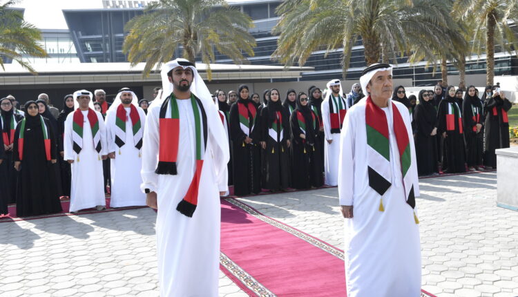 وأضاف قائلاً: “نفتخر باجتماعنا اليوم لنرفع عالياً راية كرامتنا وعزّنا، ونقف بشموخ وفخر واعتزاز إجلالاً لعلم وطننا، مُعبّرين عن محبّتنا العميقة لأرضه وترابه. كما نُجدّد في هذا اليوم العهد والولاء لقيادتنا الرشيدة ببذل الغالي والنفيس من أجل الحفاظ على مكتسبات الاتحاد الغالية، ومواصلة تعزيز قيم الخير والعطاء في نفوس أبنائنا وبناتنا، والاستمرار في مسيرة التنمية الثقافية والعلمية التي أرسى دعائمها مؤسس دولة الإمارات المغفور له بإذن الله الشيخ زايد بن سلطان آل نهيان “طيّب الله ثراه”.