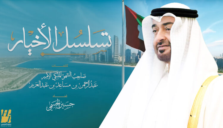 شدا “جبل الأغنية العربية” الفنان الإماراتي حسين الجسمي قصيدة “تسلسل الأخيار” من أشعار صاحب السمو الملكي الأمير عبدالرحمن بن مساعد بن عبدالعزيز، حاملة في طياتها الكثير من معاني الفخر والعزة لتسلسل رؤساء دولة الإمارات العربية المتحدة، حيث قال فيها مسطراً معاني المحبة والترابط والتلاحم القوي الذي تجتمع به قيادة الإمارات وشعبها، وقال: