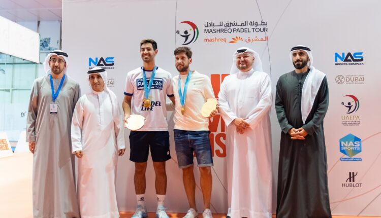 توّج الشيخ سعيد بن مكتوم بن جمعة آل مكتوم، رئيس اتحاد الإمارات للبادل، الفائزين في بطولة البادل التي اختتمت منافساتها في 3 فئات مساء أول من أمس (الإثنين)، وحصل الثنائي نيكولا سياسيا وبيل ريلات على لقب فئة التصنيف المحلي 10 نقاط (رجال) بتغلبهما في المباراة النهائية على حساب أنشول شوبال وأيشان شوبال بمجموعتين دون رد 6 – 4 و6 – 2، فيما توج الثنائي عائشة العوضي وأندريا سوتو بلقب فئة التصنيف المحلي 10 نقاط (سيدات) بفوزهما في النهائي على غوادلوبي دي سان فليكس وغابرييلا دوتش 6 – 3 و6 – 3.