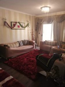 مكونة من 3 غرف و حمامين و ريسبشن قطعتين، لا يوجد اي غرفة علي مناور.. عداد كهرباء قديم