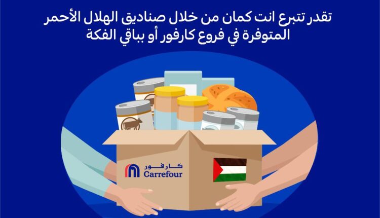 يمكن لعملائنا الكرام التبرع من خلال مبادرة “باقي الفكة” وصناديق التبرعات داخل متاجر كارفور ليتم إرسالها إلى الهلال الأحمر المصري.