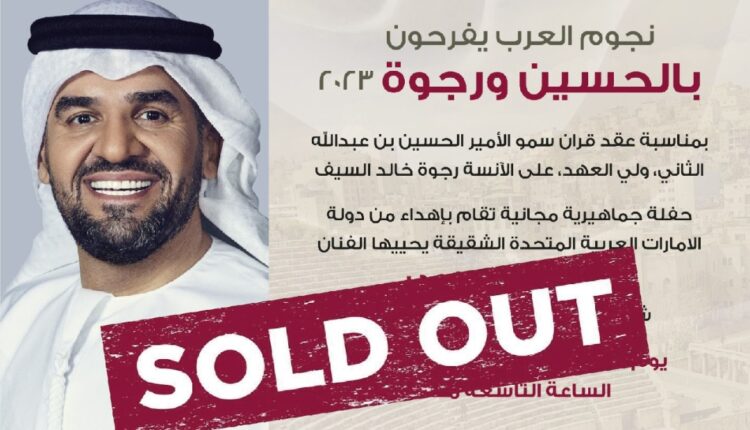 حطم الفنان الإمارات حسين الجسمي الرقم القياسي في حفله المرتقب يوم 3 يونيو/حزيران 2023 بنفاذ جميع تذاكر الحضور خلال أقل من 15 دقيقة من وقت اعلان الحفل بين الجمهور الأردني، بمناسبة عقد قران سمو الأمير الحسين بن عبدالله الثاني على الآنسة رجوة خالد السيف، وذلك في المدرج الروماني بالعاصمة الأردنية عمّان.