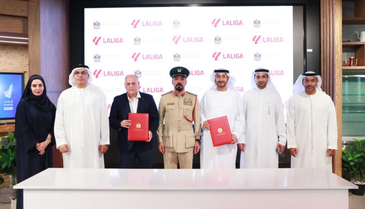 وقّع المذكرة سعادة عبدالله أحمد آل صالح، وكيل وزارة الاقتصاد، وسعادة خافيير تيباس، رئيس رابطة الدوري الإسباني لكرة القدم، وذلك بحضور سعادة اللواء الدكتور عبدالقدوس العبيدلي، مساعد القائد العام لشؤون التميز والريادة في شرطة دبي رئيس مجلس إدارة جمعية الإمارات للملكية الفكرية، وسعادة عبدالله بالهول، الرئيس التنفيذي لمجموعة تيكوم، وسعادة ماجد السويدي، النائب الأول لرئيس مجموعة تيكوم – مدينة دبي للإعلام.
