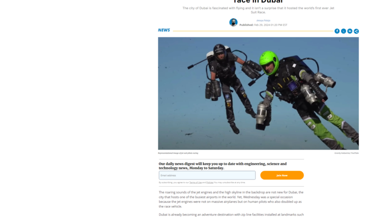 India-based NDTV network also featured an article on its World News segment. “Watch: World’s First Jet Suit Race In Dubai Featuring ‘Iron Man’ Pilots,” the NDTV headline read.